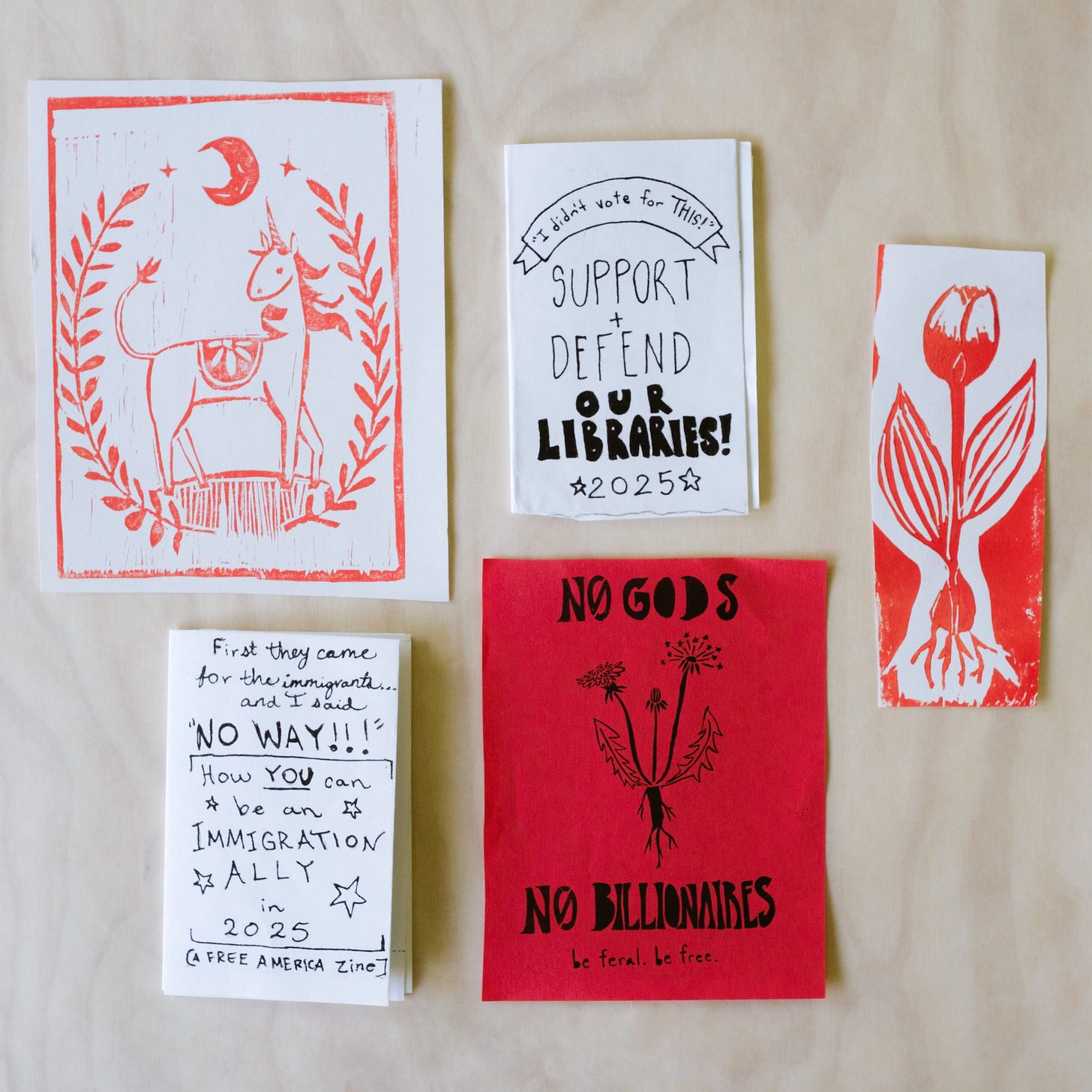 This zine + artwork combination is about as opposite of an Instagram post as you can get. It’s hyperlocal rather than broadcasted to the whole world. It is tangible instead of existing in the digital ether. There are no likes, no comments, either people pick them up or they don’t. And if they pick them up then we have made a connection. My art exists in their world, maybe in a frame, maybe pinned by a magnet to a refrigerator, maybe as a bookmark, maybe it was gifted to someone else who would appreciate it more, and yeah maybe some have ended up in the recycling bin. I won’t know and the not knowing is okay. Art can go on its own journey independent of the person who created it.